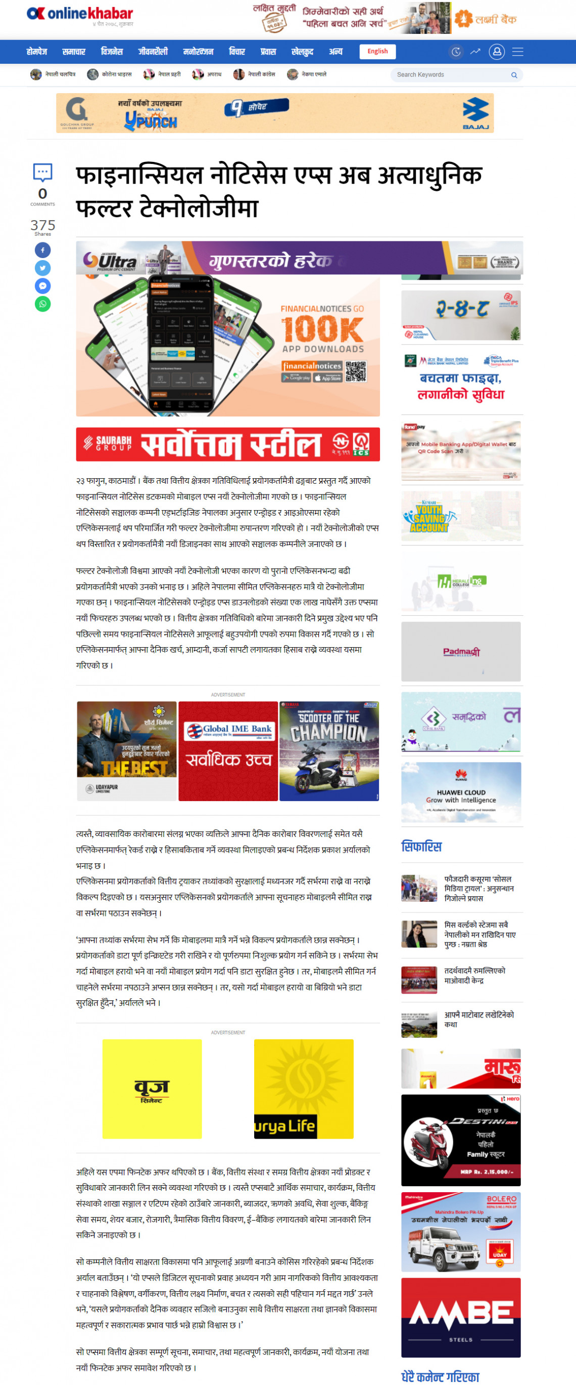 फाइनान्सियल नोटिसेस एप्स अब अत्याधुनिक फल्टर टेक्नोलोजीमा (OnlineKhabar)